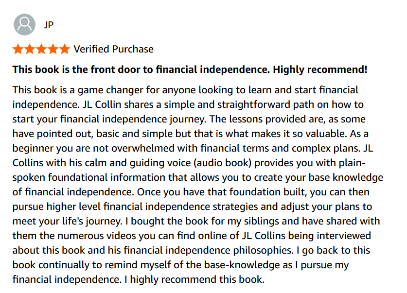 JL Collins wrote this originally as letters to his daughter. It is the definitive guide to index fund investing. He simplifies the terrifying world of the stock market into a strategy that a 10-year-old could follow.