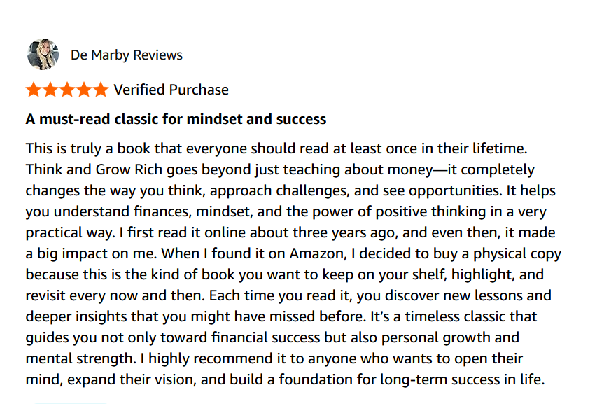 | Think & Grow Rich | Napoleon Hill | Medium | Entrepreneurs | Mindset |