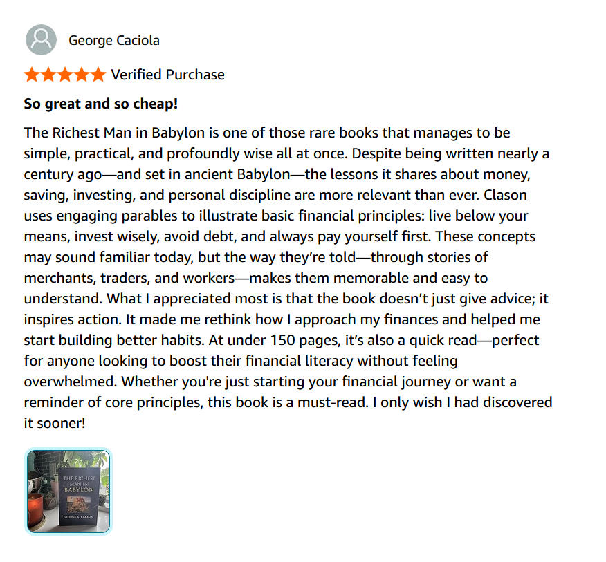 | Richest Man in Babylon | George S. Clason | Easy | Story Lovers | Fundamental Laws |